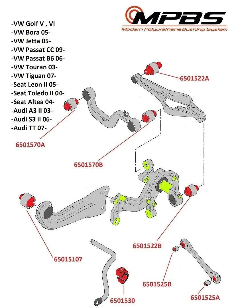 Set bucse poliuretan fata/spate MPBS (Audi A3 8P, VW Golf V) - 6501501